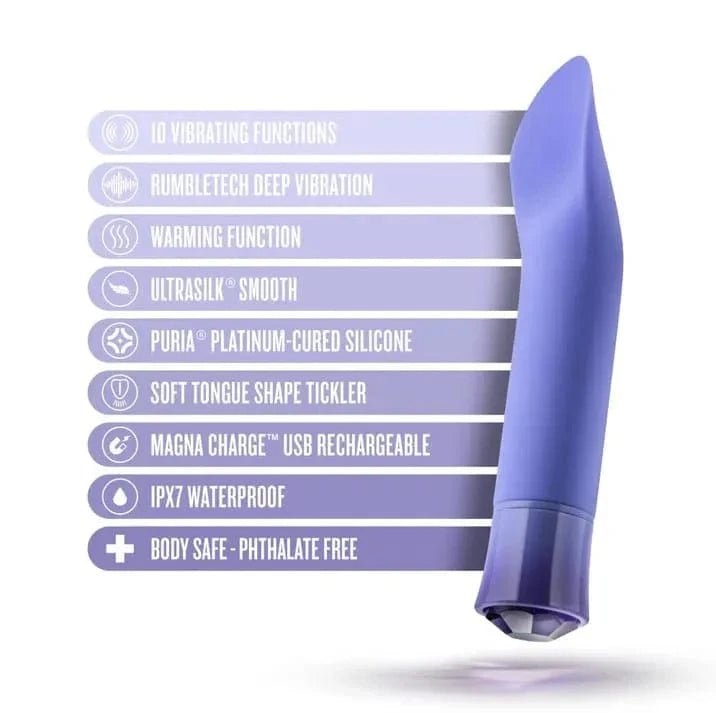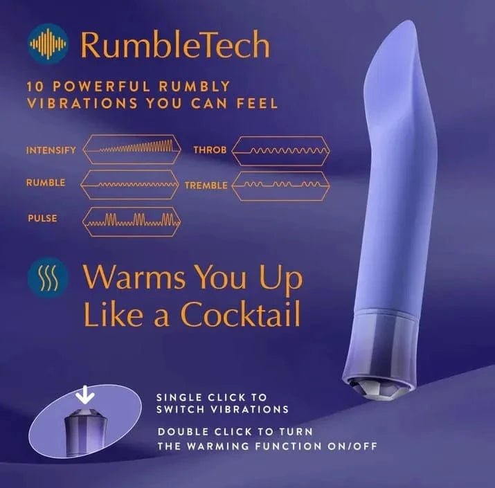 Stylish in lilac with a decorative gem at the base, oh My Gem Enrapture offers 10 rumbly modes plus a warming function. The warming is gentle and mainly focused on the shaft just below the cupped tip. The vibrator warms up to a very comfortable 41°C for increased blood flow and enhanced pleasure.
