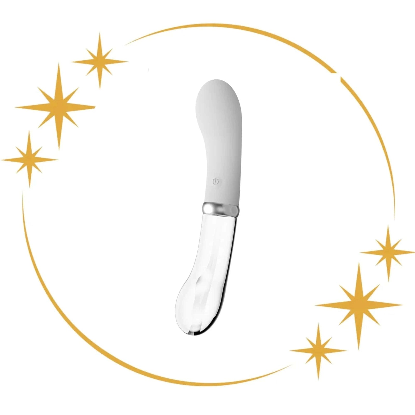 One end features a G-spot vibrator made from silky silicone and the other end features a solid borosilicate glass G-spot dildo. Winner, winner, G-spot orgasms for dinner!