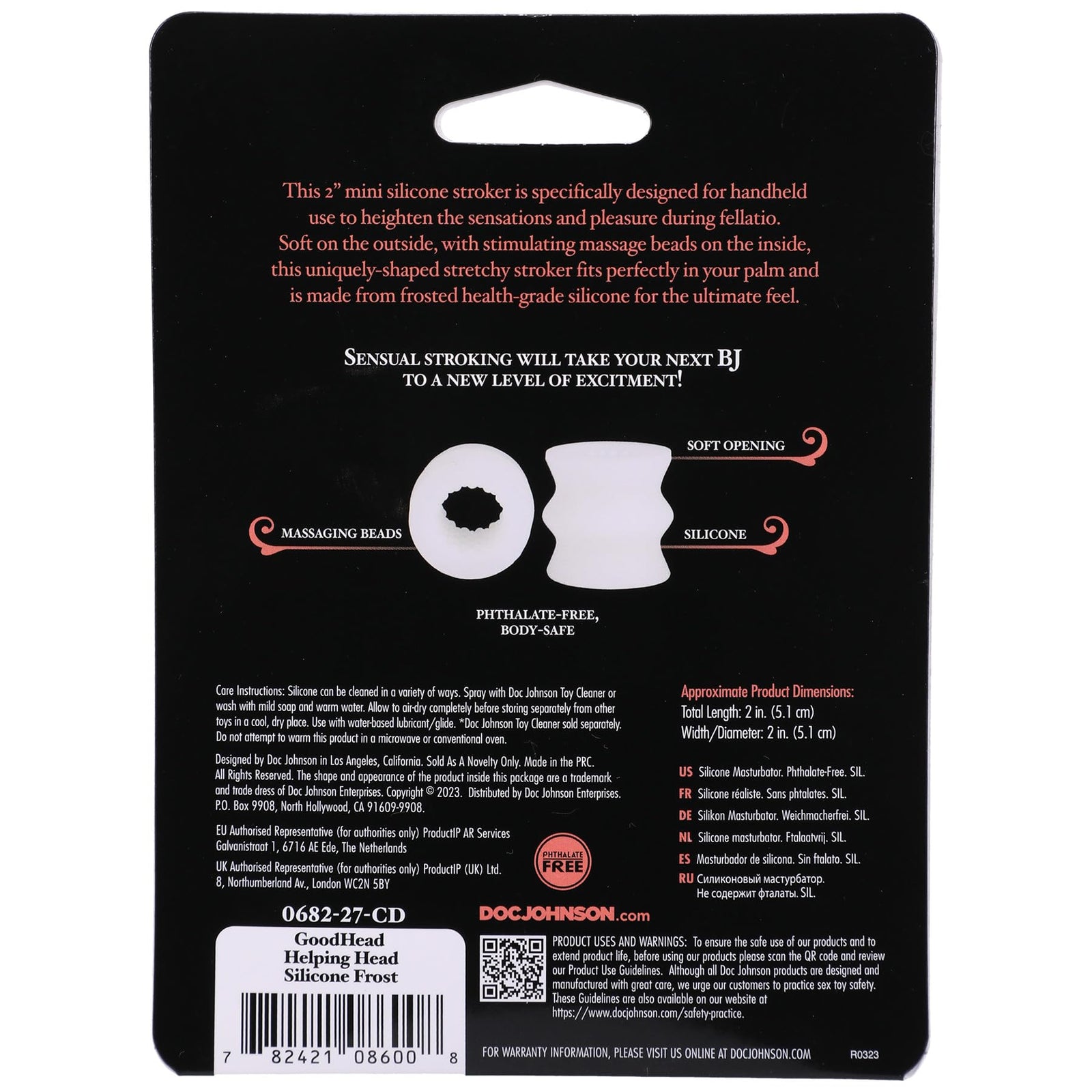 For givers, the GoodHead Helping Head Silicone Stroker ensures you don't take more of an erect penis into your mouth than you are comfortable with, though the sleeve makes it feel like the entire sausage is sucked into warmth.