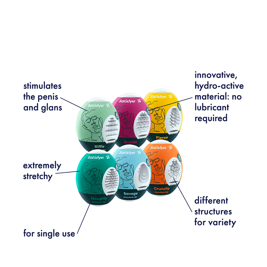 Satisfyer Masturbator Eggs are perfect travel companions. Buy singularly or as a six-pack.