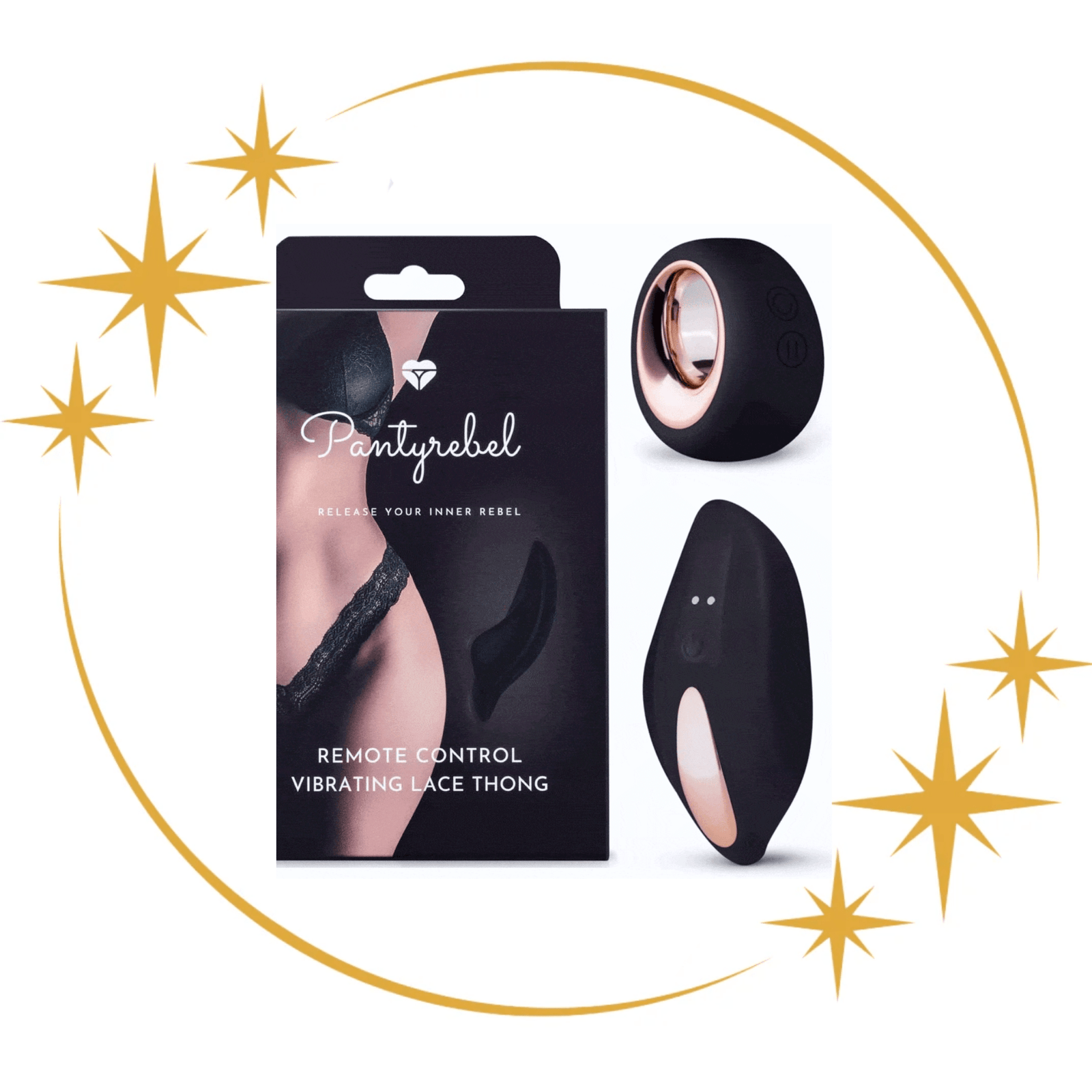 Panty Rebel Vibrating Lace Thong is a gorgeous thong panty designed for secret smiles! Beautiful and well-designed lay-on vibrator fits snugly into the pocket inside the sexy black panties. The knickers are made from a soft, stretchy material that feels comfortable against naked skin. Want to play in public? No problem - the wireless controller lets you take charge of 12 sensual settings! The remote works up to 8 meters.